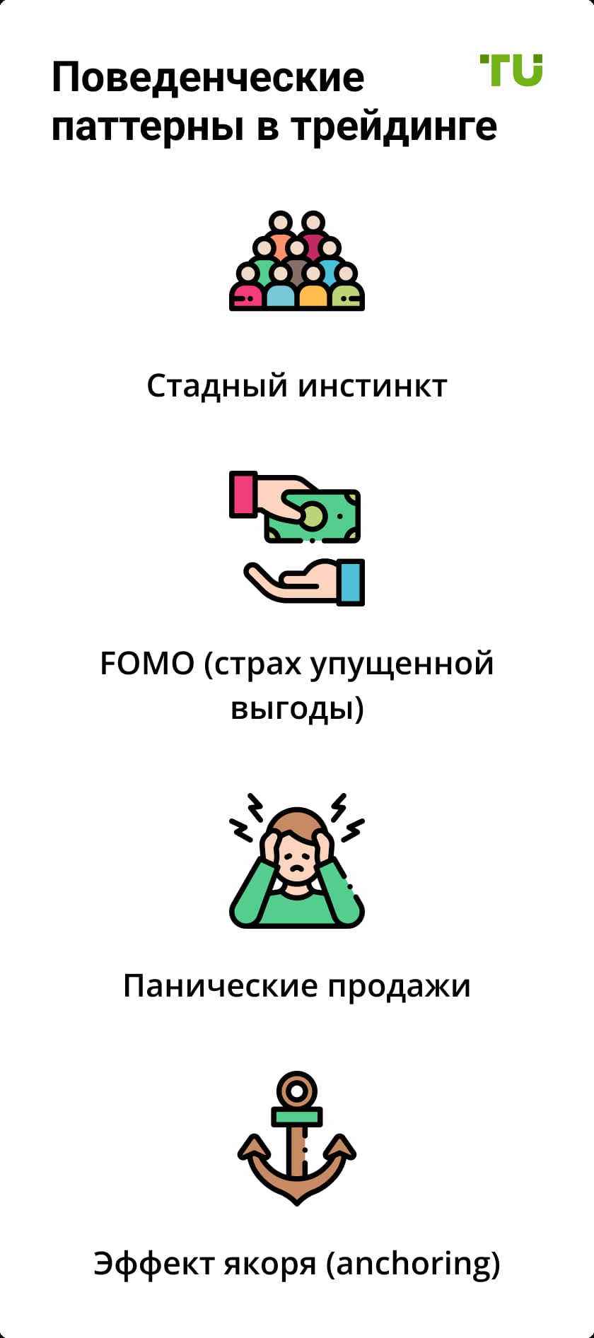 - Эмоциональные решения — спонтанные действия под влиянием страха или жадности.