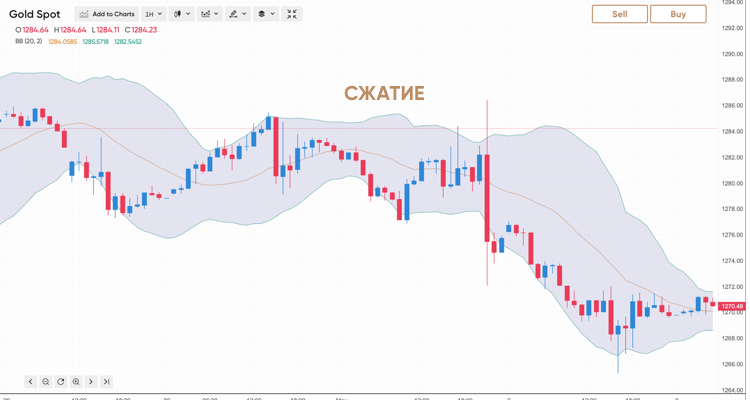 - Пример 2: торговля на сжатии канала (сжатие Боллинджера)