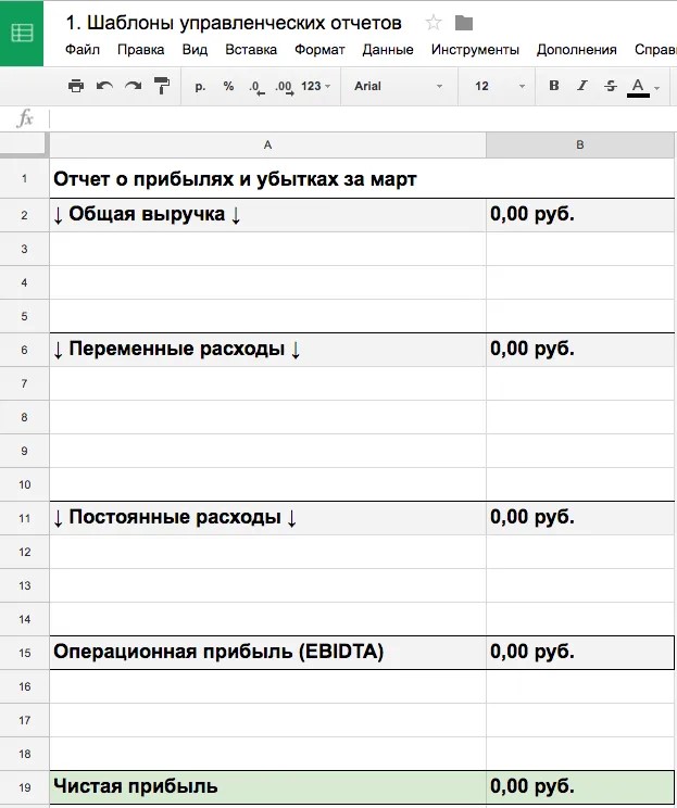 | Чистая прибыль | Финальный показатель прибыльности компании за отчетный период; |